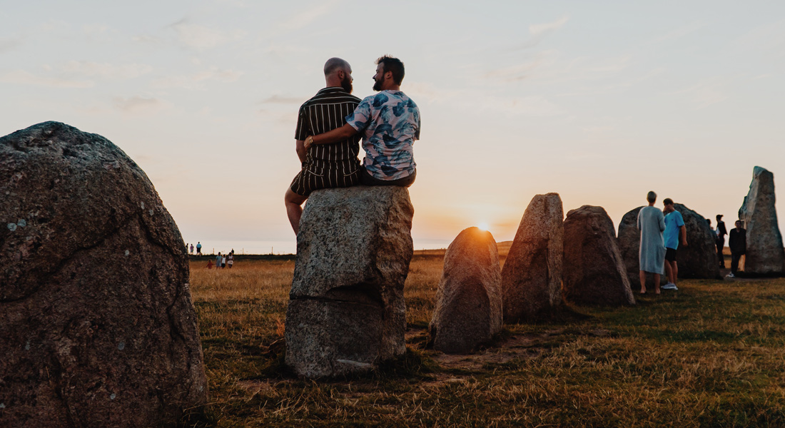 But back to our last evening! After dinner, we jumped in our rental car and made our way south to the coast to the small fisher village Kåseberga. Bring some beers, a light jacket, and your camera. Why? The sunsets here at Ales Stenar are spectacular. The so-called Swedish Stonehenge is located on a 20 m high cliff and is one of the most romantic viewpoints we’ve ever visited. The small village has some restaurants and snack bars as an alternative dinner option. Bye, bye, Scania and Southern Sweden. It has been a pleasure. Read more about our Swedish Gay Summer Adventure here >