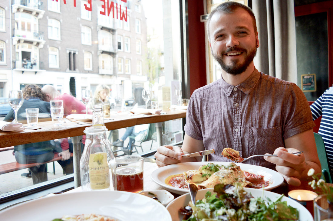 [edgtf_dropcaps type=”normal” color=”#3f6557″ background_color=””]T[/edgtf_dropcaps]his amazing place is very special to us. Let us tell you a short story about one of our favorite restaurants Cantinetta Wine & Pasta in Amsterdam West (very gay-friendly). During Karl’s first time visiting Daan over the weekend three years ago, we went together to the, back then, recently opened restaurant Cantinetta Wine & Pasta in Amsterdam West. The food was (still is) amazing and with its “Berlin sense of style” it felt for Karl a bit like home.