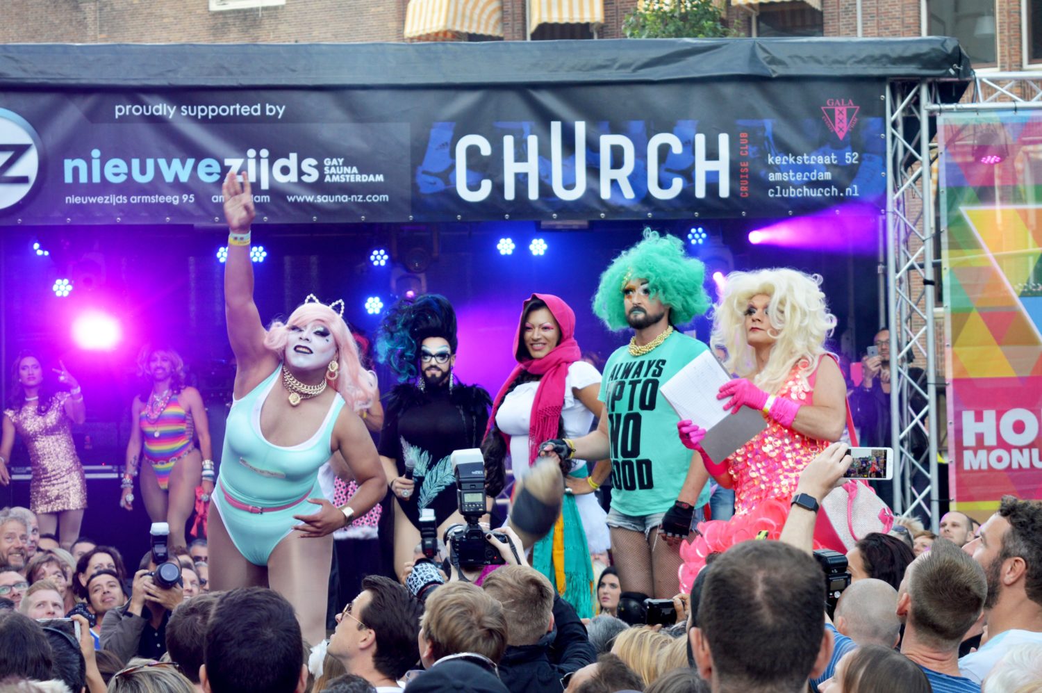 The evening before the annually Drag Olympics on the Homomonument at the Westerkerk, herald the start of the final Pride Weekend of the EuroPride 2016. For this hilarious event next to the Pink Point Amsterdam, the best trashy Drag Queens of Amsterdam and some of their international girlfriends gathered together for a high heel race, a hula-hoop contest and a handbag long throw. But mind your head, the ladies have unforeseen powers!