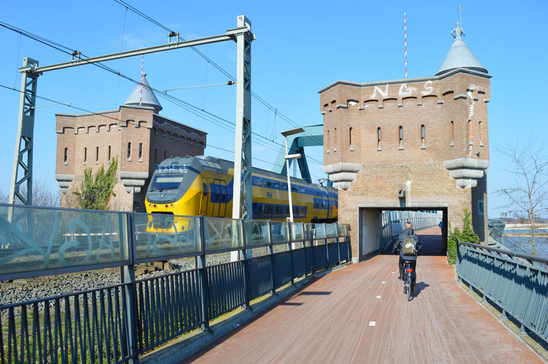 After this experience, we were perfectly prepared to explore the city with all our senses. The bikeways around Nijmegen are splendidly constructed and safe even for less experienced bikers. And so we took our route over the Waal river via the historically important train bridge with our rental bikes. In 2004, a pedestrian and bikeway was added to the bridge construction, called De Snelbinder. After a short stop on the bridge to enjoy the view over Nijmegen, we biked along the North side of the river in western direction. From here we enjoyed peaceful landscape and wonderful views over the glistening river and the beautiful, old city Nijmegen with several stops along the way. To come back on the South side of the river, we decided to take the bridge “De Oversteek”, a very impressive piece of modern architecture, that opened in 2013.